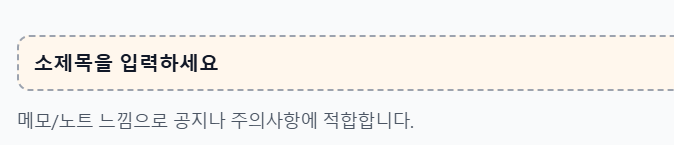 <div style="margin:26px 0 12px; padding:10px 12px; border:2px dashed #9ca3af; border-radius:10px; background:#fff7ed; font-weight:800;"> 소제목을 입력하세요 </div>