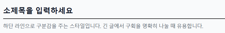 <h2 style="margin:24px 0 8px; padding-bottom:8px; border-bottom:2px solid #222; font-size:1.3rem; font-weight:700;"> 소제목을 입력하세요 </h2>