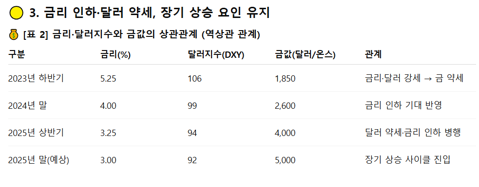 3. 금리 인하·달러 약세, 장기 상승 요인 유지
