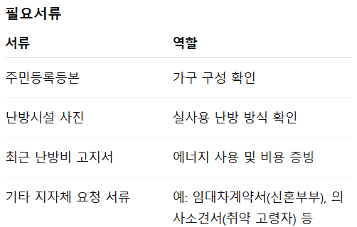 지원 규모는 가구 상황과 난방 방식에 따라 차등 지급되며, 최대 70만 원까지 지원됩니다.