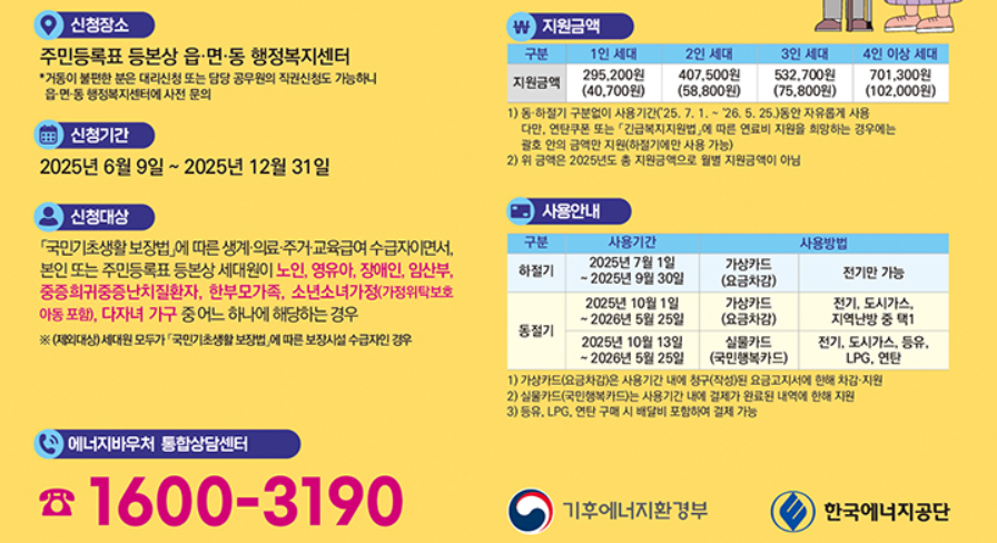 지원금은 난방비·냉방비 모두 포함된 연간 지원 금액입니다.